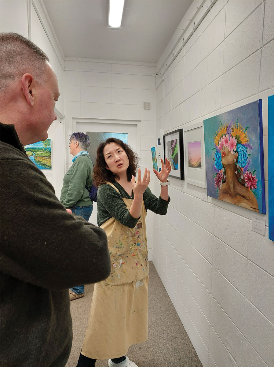 Feedback on the exhibition was just as positive: Mere said “When I was asked to be part of this show, it was nerve-wracking. However, now that it’s up, it feels nice to have my art on display. It’s great seeing people look at my work and also getting to enjoy everyone else’s art”. Sandra commented that “It feels really good. At first, I didn’t know how to use acrylics, but now I’ve learnt new skills. I enjoy the community – there’s lots of laughter, fun, and good ideas. It feels nice to have my artwork up alongside everyone else’s, and to see all the different pieces. I just really enjoy being here today”.