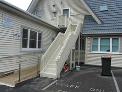 In 2014, the strengthening work on ACE House was completed, which involved the removal of chimneys. Additionally, a building consent application was approved to undertake critical foundation work, tying the House to the piles and replacing deteriorated, unreinforced concrete. Furthermore, upgrades were required to bring the building in line with current compliance codes set by the Council. These upgrades included the installation of smoke and heat detectors, an improved fire escape system, and the addition of an accessible ramp to the House.
